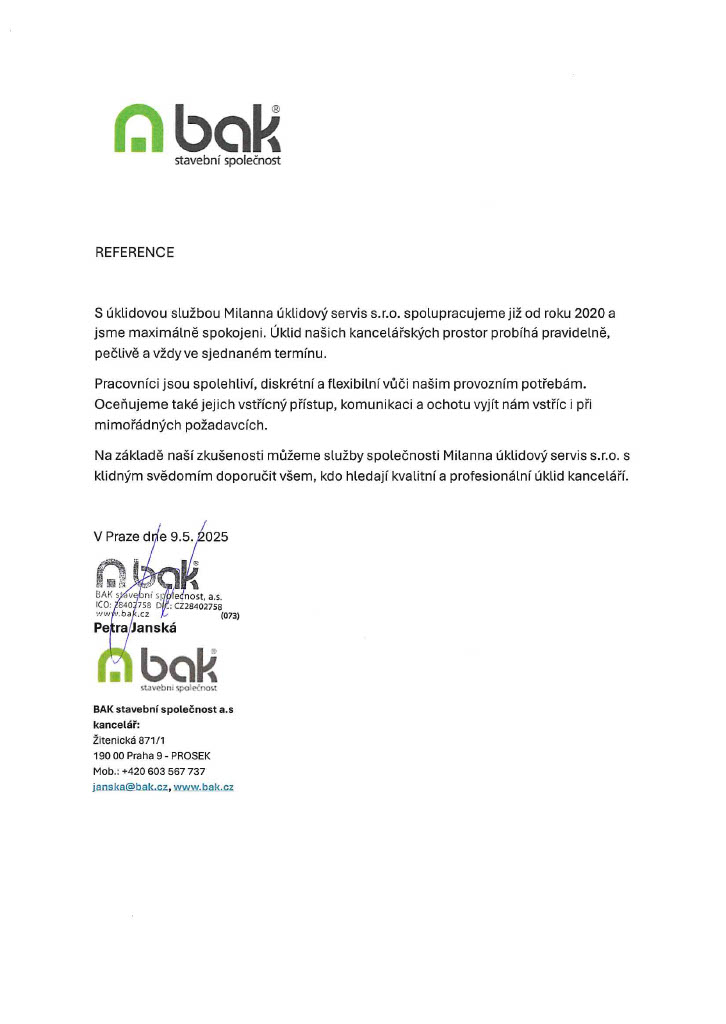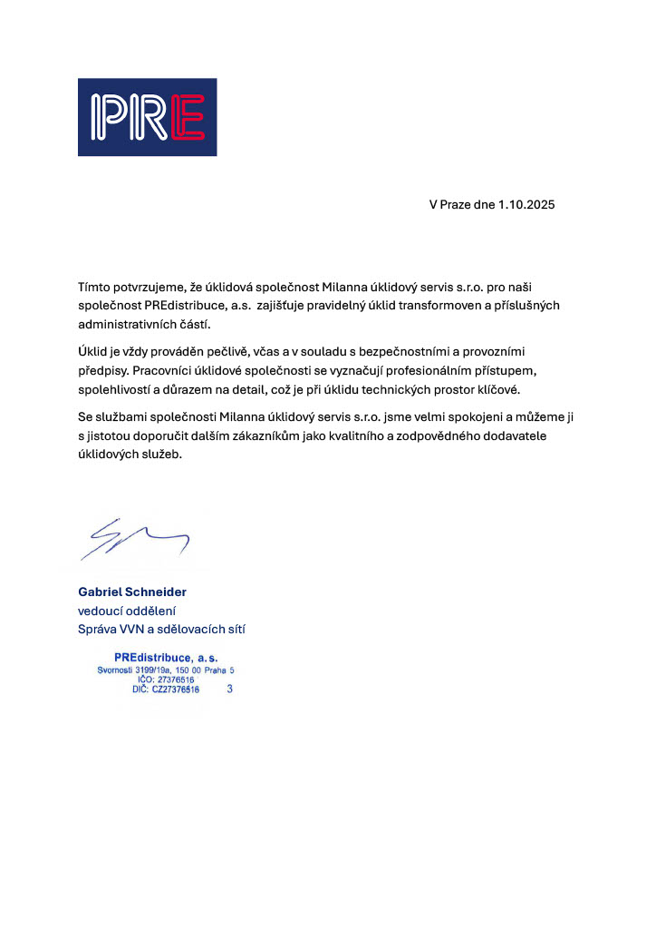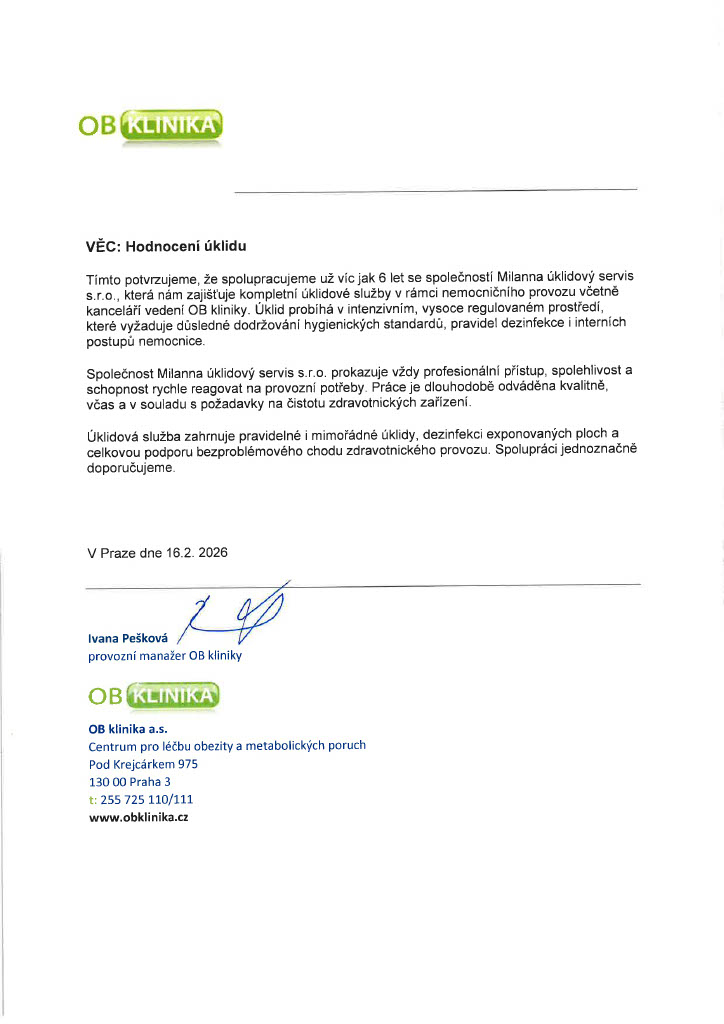 Je vidět, že mají procesy. Úklid není „nějak“, ale podle jasného plánu a kontrol. Změny se řeší rychle a bez výmluv. Zároveň používají prostředky, které nedráždí – to bylo pro nás důležité.